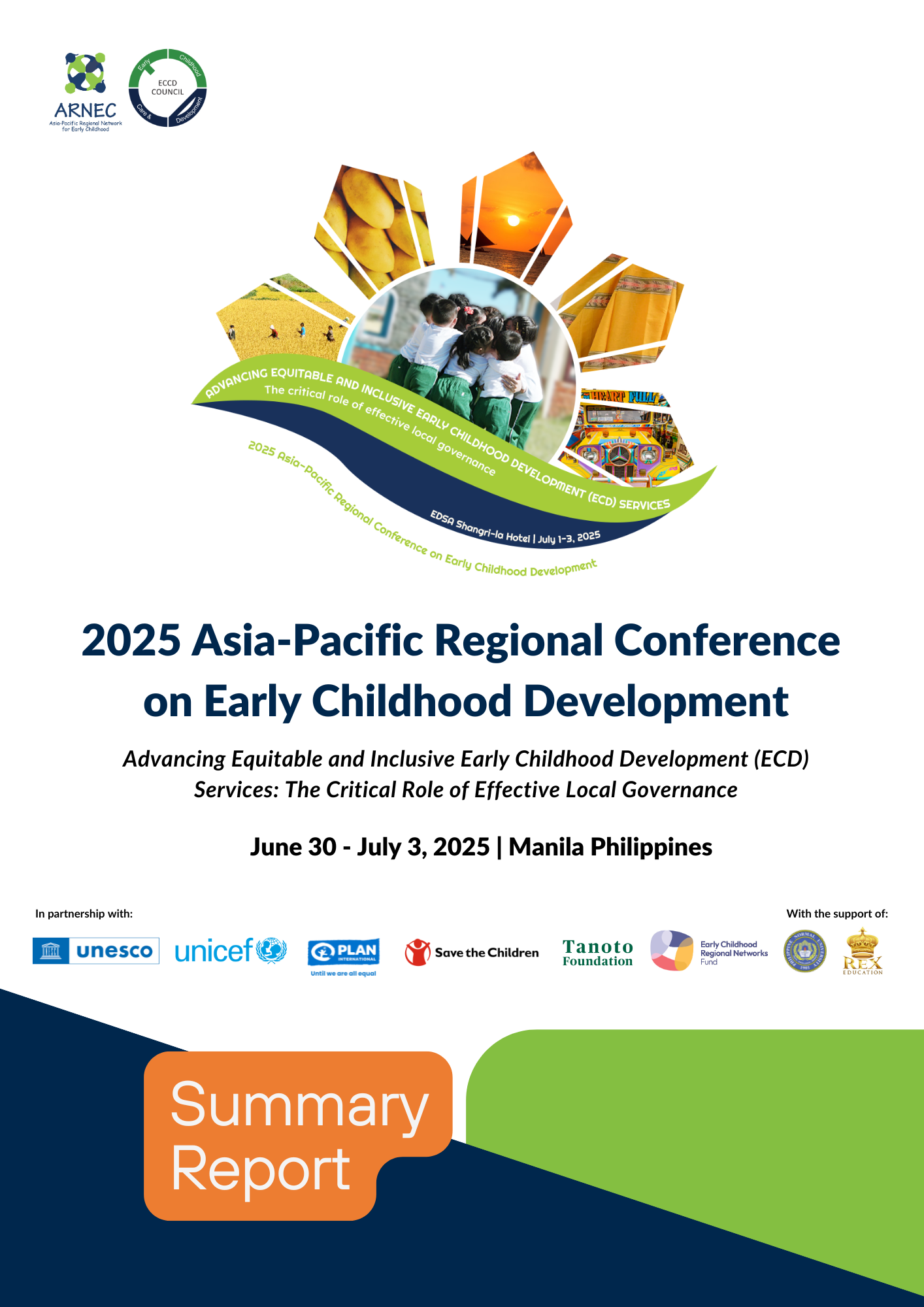 Organised by the Asia-Pacific Regional Network for Early Childhood (ARNEC), the Conference was supported by Plan International, Save the Children, Tanoto Foundation, Early Childhood Regional Networks Fund, UNICEF, and UNESCO. In this year’s edition, the ECCD Council of the Philippines hosted the Conference with the support of the Philippine Normal University and REX Education.